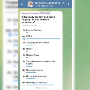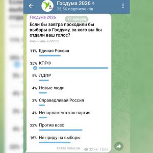 Опрос «Госдума 2026» (создан 17 января, 12 тысяч 495 проголосовавших):