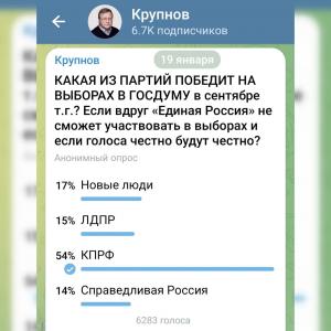Опрос «Крупнов» (создан 19 января, 6 тысяч 283 проголосовавших):