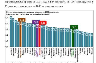 Практикующих врачей на 2018 год в РФ оказалось на 12% меньше, чем в Германии, если считать на 1000 человек населения.