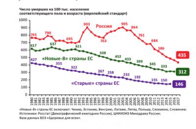 Коэффициент смертности от ССЗ, внешних причин, более, чем в 2 разапревышал показатели в странах ЕС.
