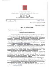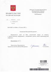 Ответ вице-премьера Голиковой на один из таких депутатских запросов