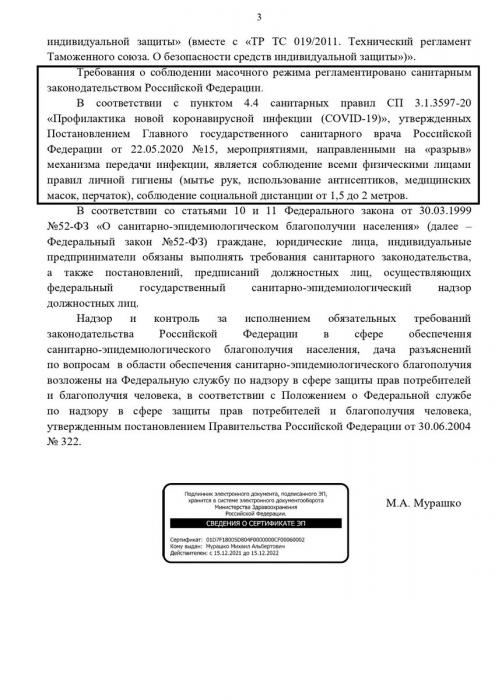 Ответ Минздрава на депутатский запрос С.П. Обухова об обоснованности ужесточения масочного режима на фоне сведений об их невозможности остановить распространение ковида.