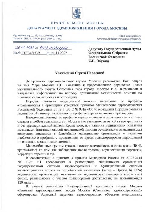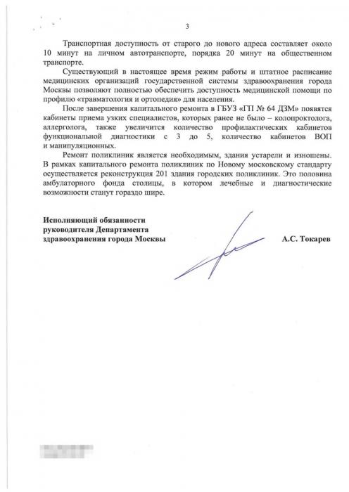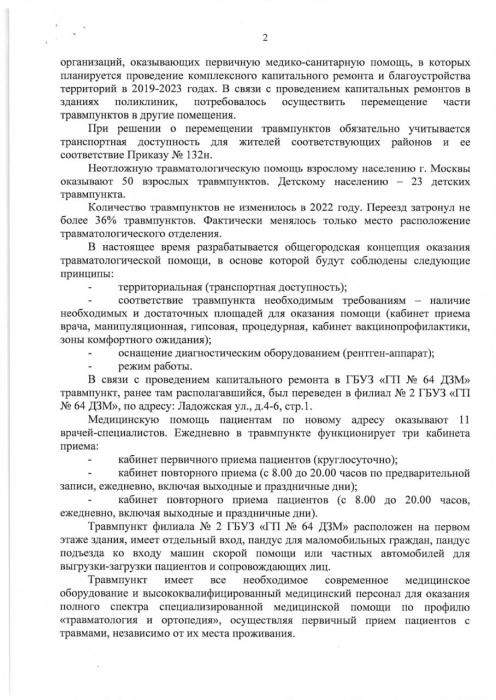 Получили от Департамента здравоохранения г. Москвы ответ на запрос по травмпункту в поликлинике №64 в Соколиной горе, который закрылся на капремонт вместе с поликлиникой ещё в феврале 2022 года.
