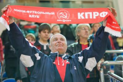 «Ленин, Партия, Комсомол!», — под сводами универсального спортивного центра «Юность» подмосковного Климовска, старая коммунистическая речевка звучит необычно бодро. Под нее и современный бит собравшиеся на трибунах несколько сотен болельщиков разных возрастов призывают свою команду КПРФ не сдаваться. Хлесткий удар мимо стенки! Голкипер хозяев с огромным трудом спасает ворота КПРФ. И тут же защитник в последнюю секунду в нечеловеческом прыжке выносит «мертвый» мяч с ленточки. «Привет, КПРФ!», — из динамиков радостно гремит уже новый призыв-ремикс. Зал ревет от восторга и лупит в резиновые палки, с известным на весь мир логотипом «Серп и молот».