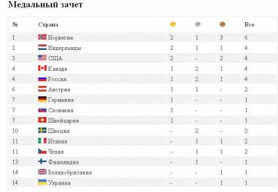 В неофициальном командном зачете сборная России поднялась с 10-го места на 4-е. К утру понедельника у неё одна золотая, две серебряные, одна бронзовая награды. Лидирует пока сборная Норвегии (соответственно 2 – 1 – 3).