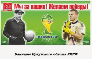 Так, например, коммунисты Иркутской области подготовились к началу чемпионата мира по футболу заранее - по основным трассам области вывешены поддерживающие наших футболистов плакаты. Иркутская КПРФ напоминает новому поколению российских болельщиков о славных традициях советского футбола и о легендарном Льве Яшине.