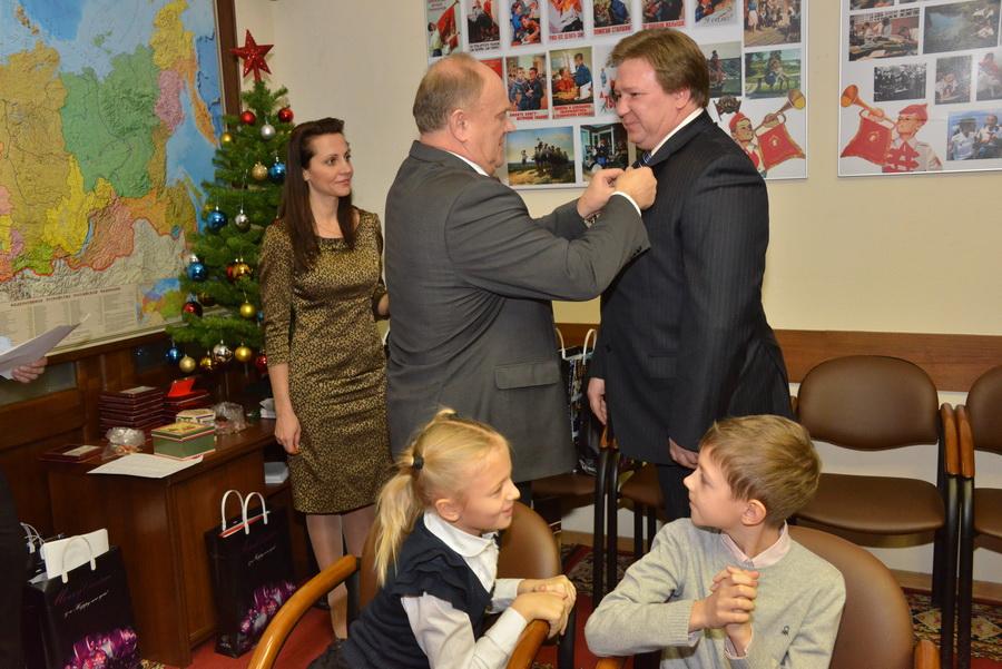 «Один из главных итогов ушедшего года, – отметил Г.А. Зюганов, - историческое воссоединение Крыма и Севастополя с Россией. Хотим вас наградить памятной медалью, приуроченной Центральным Комитетом к 70-летию освобождения Крыма и Севастополя от немецко-фашистских захватчиков, что созвучно и с недавними событиями».