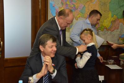 «Один из главных итогов ушедшего года, – отметил Г.А. Зюганов, - историческое воссоединение Крыма и Севастополя с Россией. Хотим вас наградить памятной медалью, приуроченной Центральным Комитетом к 70-летию освобождения Крыма и Севастополя от немецко-фашистских захватчиков, что созвучно и с недавними событиями».