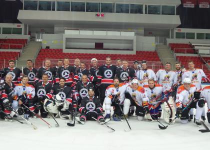 журналисты оттачивают своё хоккейное мастерство. В составе
