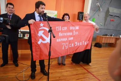 памятной медалью "70 лет Победы". А так же вручил копию Знамени Победы,