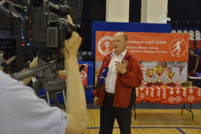 "15 лет назад, - напомнил Геннадий Андреевич, - наш спортивный клуб начинал с небольшой команды Московского Государственного Университета, которая играла в мини-футбол". Он отметил, что за эти годы удалось добиться больших успехов. Сегодня клуб КПРФ входит в пятерку лучших команд Суперлиги России, а спортсмены моложе 23 лет стали в этом году чемпионами страны. Лидер коммунистов поблагодарил всех, кто помогал создавать команду и добиваться выдающихся результатов.