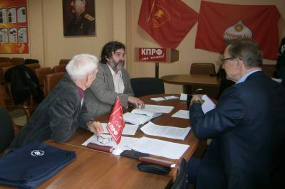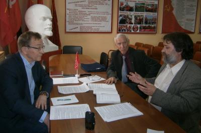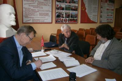 На фото: Любопытную инициативу обсуждают В.Г. Поздняков, К.О. Шлямов и Б.П.