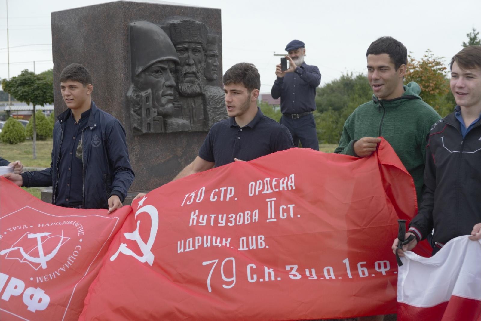 России, Северной Осетии, Знамя Победы, флаги КПРФ, движения юных миротворцев, а