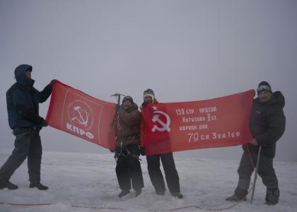 Беляева, ветераны альпинизма и представители КПРФ. Альпинисты взяли с собой флаги