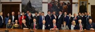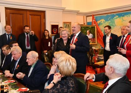 «Мы рады вас приветствовать в стенах Государственной Думы, - поприветствовал именитых спортсменов лидер КПРФ Г.А. Зюганов. - Все мы родом из Октября. Мы живем в стране, которую собрал Октябрь. Мы гордимся знаменем Победы и знаменем Октября. Мы гордимся вашими победами. Мы гордимся своим спортом, наукой и образованием. Самыми победными, самыми храбрыми и самыми космическими, самыми умными людьми Советской страны».