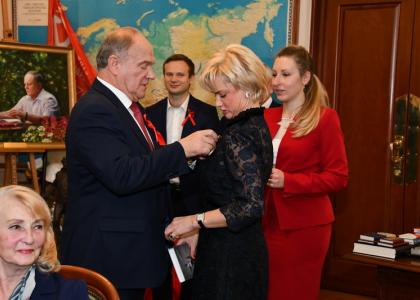 7 ноября Председатель ЦК КПРФ Г.А. Зюганов вручил памятные медали ЦК КПРФ «100 лет Великой Октябрьской социалистической революции» группе известных советских и российских спортсменов.
