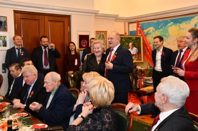 «Мы рады вас приветствовать в стенах Государственной Думы, - поприветствовал именитых спортсменов лидер КПРФ Г.А. Зюганов. - Все мы родом из Октября. Мы живем в стране, которую собрал Октябрь. Мы гордимся знаменем Победы и знаменем Октября. Мы гордимся вашими победами. Мы гордимся своим спортом, наукой и образованием. Самыми победными, самыми храбрыми и самыми космическими, самыми умными людьми Советской страны».