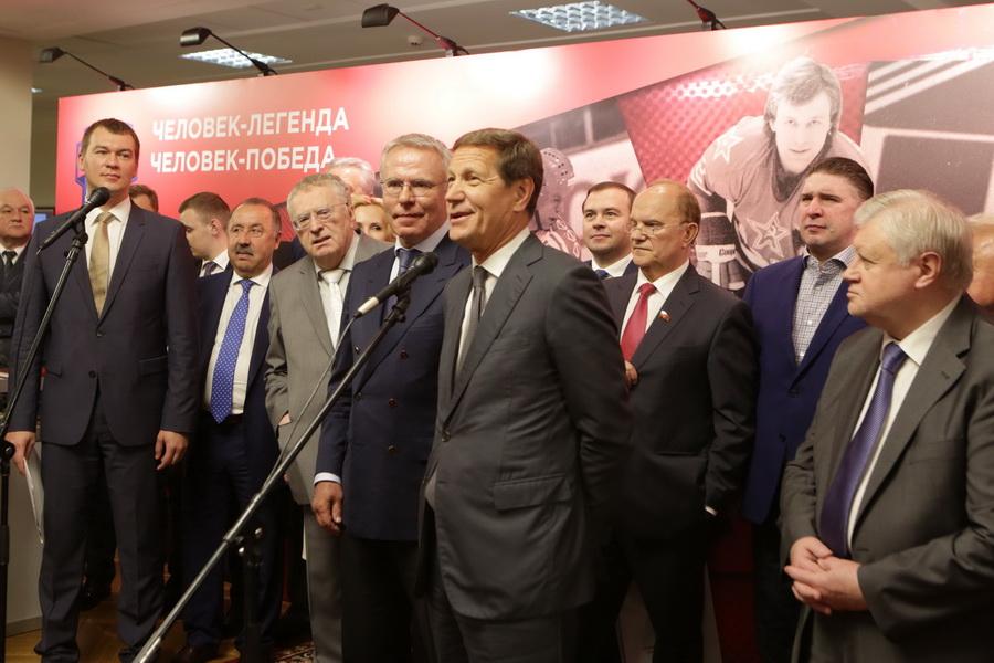 Депутаты и знаменитые спортсмены приняли участие в открытии выставки в Государственной Думе, посвященной 60-летию советского и российского хоккеиста Вячеслава Фетисова.