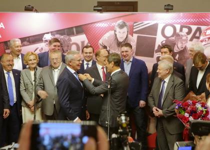 Сердечно поздравил юбиляра и лидер российских коммунистов Г.А. Зюганов. Он вручил выдающемуся советскому и российскому спортсмену памятный подарок.