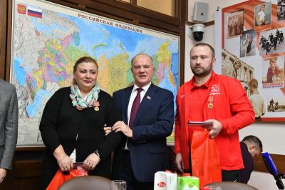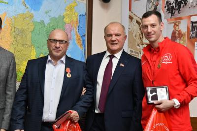 «Спортивный клуб КПРФ по мини-футболу добился больших успехов на престижных соревнованиях, игроки нашего клуба представлены в сборной России. Мы гордимся вами», - поблагодарил футболистов лидер КПРФ и вручил им памятные ордена ЦК КПРФ «100 Ленинскому комсомолу». В числе награжденных не только футболисты, но также тренеры и активные болельщики команды.