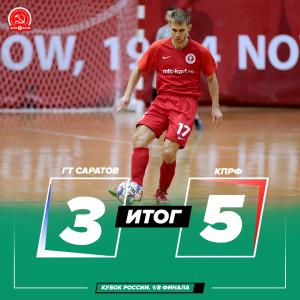 В первом матче 1/8 финала Кубка России МФК КПРФ переиграл саратовский клуб «Газпром-Трансгаз» со счётом 5:3.