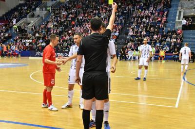 МФК КПРФ приехали поддержать в Люберцы более двухсот болельщиков. Но в первом тайме наши ребята выглядели не так хорошо, как в предыдущих встречах. Вероятно, близость столь желанного "золота" подействовала сковывающе. "Газпром-Югра", напротив, зная, что отступать некуда, играл спокойно. И дважды забил.
