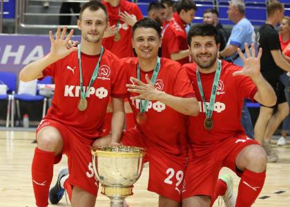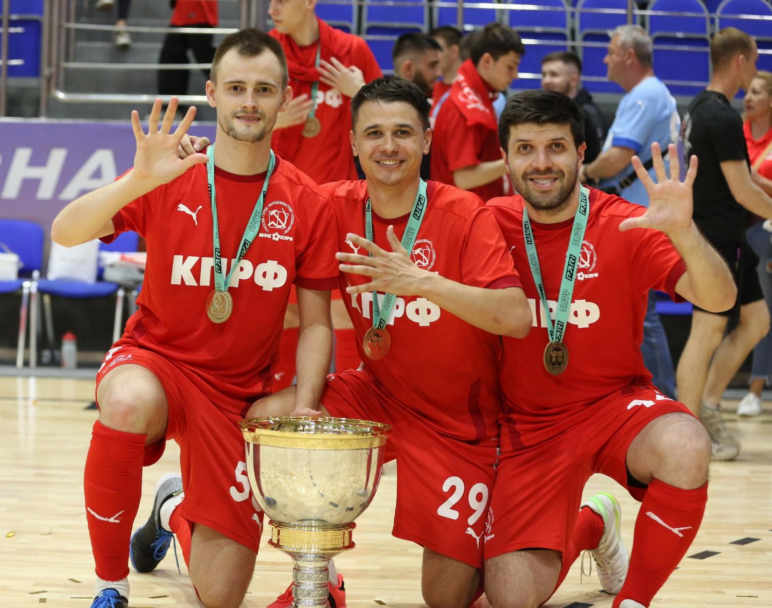 «Был пройден очень сложный путь к этой победе. Честно, в начале не верил, что сможем выиграть три года подряд. В этом году команд пять-шесть претендовали, а обычно – две-три. К нашему счастью, мы прошли этот путь, попали в финал, пройдя очень сильную команду. В финале тоже сложилось. Очень рад за наш клуб, спасибо руководству, которое дает работать, создает все условия. Огромное спасибо ребятам, они – главные виновники этого торжества», – поделился после игры главный тренер «КПРФ-2» Михаил Маркин. Для нашего титулованного специалиста этот триумф стал уже шестым, именно он еще в 2011 году вывел основную команду МФК КПРФ из Высшей лиги в Суперлигу.