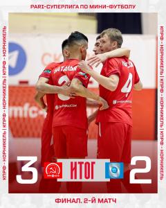 КПРФ обыграла «Норильский никель» во 2-м матче финальной серии ЧР по мини-футболу.
