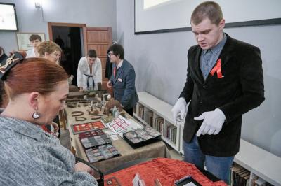 С самого порога гостей охватывала особая, торжественная и волнительная атмосфера. В фойе, где царил доброжелательный порядок, организованный волонтерами, развернулась выставка — немой, но красноречивый рассказ о подвиге, который заставлял замедлить шаг и задуматься.