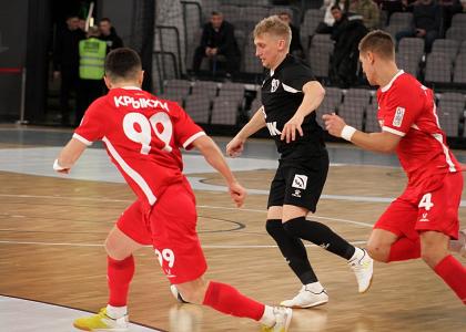 Первый тайм прошел в равной и зрелищной борьбе с обоюдоопасными атаками. Счет открыли наши спортсмены: после точного прострела мячом овладел Жуау Гилерме Шимбинья, который вывел МФК КПРФ вперед. Однако еще до перерыва хозяевам удалось сравнять счет. На тайм команды ушли при ничейном результате 1:1.