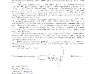 На обращение в администрацию города Нягань по вопросам ЖКХ депутату был предоставлен ответ за подписью главы администрации города Нягань Римы Кадимовны Дакукиной.