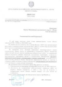 На обращение в администрацию города Нягань по вопросам ЖКХ депутату был предоставлен ответ за подписью главы администрации города Нягань Римы Кадимовны Дакукиной.