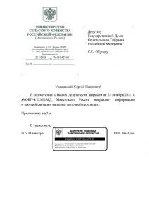 Получил ответ Минсельхоза России на мой депутатский запрос о мерах в связи с ростом цен на сливочное масло. В переводе с бюрократического тезисы ответа таковы: