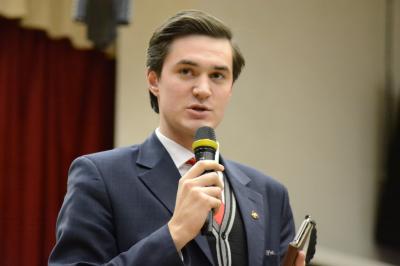 Тепло встреченный собравшимися в актовом зале студентами, он от имени московского комсомола выразил готовность оказать всемерное содействие смелой студенческой забастовке, поблагодарил ребят за проявленную ими решимость. Владимир также заверил студентов, что потребует срочного созыва заседания молодежной палаты при Московской городской думе для принятия специального заявления по ситуации в РГТЭУ. Эта инициатива была встречена собравшимися с большим воодушевлением и бурными аплодисментами.