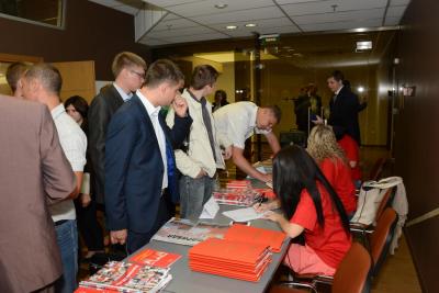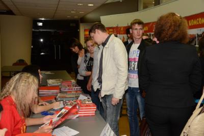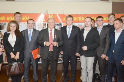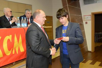 В начале заседания Г.А. Зюганов торжественно вручил комсомольские билеты группе молодежи, недавно пополнившей в ряды ЛКСМ РФ.