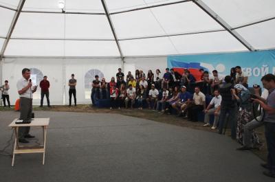 После обширной экскурсии организаторы пригласили гостей в образовательный шатер с названием «Волгоград». Там и прошла увлекательная лекцияна тему «Глобальный мир и Россия: оценки КПРФ», которая длилась более полутора часов.