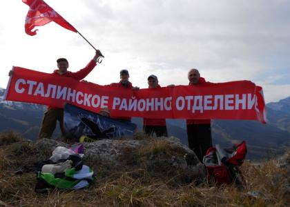 Среди них был коммунист, член бюро Сталинского РК КПРФ Отари Кавтарадзе, по инициативе которого участники восхождения развернули на пике Знамя с эмблемой ВЛКСМ. Гордо развивающееся алое полотнище стало символом незабываемых времен, наполненных романтикой и великими свершениями, воскресило в памяти каждого из них дни юности и светлых надежд.