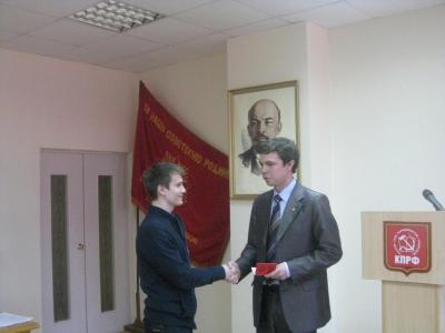 В начале собрания лидер владимирских комсомольцев Шамиль Хабибуллин выполнил приятную миссию – вручил билет ЛКСМ еще одному активисту, студенту ВлГУ Артему Данилову. Затем первый секретарь ОК ЛКСМ зачитал доклад о деятельности обкома за два года. Это было трудное и для партии, и для комсомола время, время жесткого противодействия со стороны «партии власти», период борьбы за само право существовать. В 2012-м году комсомольцы защищали от провокаций тогда еще действующего губернатора-коммуниста Николая Виноградова – снимали видеоролики «Левых новостей», в которых разоблачали нечистоплотных «партовласовцев», проводили акции в поддержку главы региона. В 2013-м активисты ЛКСМ самым активным образом поддерживали КПРФ на выборах губернатора и депутатов Заксобрания, работали в штабе и в избиркомах, агитбригады распространяли газеты и листовки кандидатов. Среди тех, кто выдвигался в депутаты ЗС, были и молодые коммунисты.