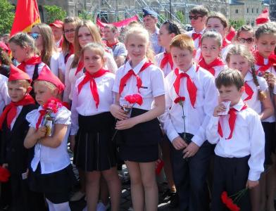 Вот уже более 15 лет стало хорошей традицией принимать в пионеры новую смену на торжественной линейке на главной площади страны. В этом году 18 мая на Красной площади в Москве собралось более четырех тыс. ребят из 26 городов, в том числе из Москвы, городов и поселков Подмосковья, Владимира, Рязани, Тулы, Калуги, республик Северного Кавказа и даже из Белоруссии. Приехали ребята и из недавно присоединившейся к России Республики Крым. Особенно красиво смотрелись дети из Северной Осетии и Кабардино-Балкарии. Они были в ярких национальных костюмах. Флагами своих стран и автономных республик выделялись белорусская и крымская делегации.