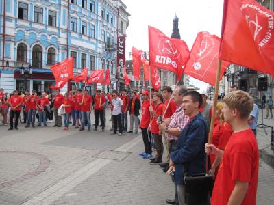 Насыщенный впечатлениями день продолжился возложением цветов к памятнику В.И. Ленина на площади Свободы. После него ребята отправились на ул. Баумана, где начинался митинг в защиту социально-экономических прав граждан и в поддержку народа Новороссии. На митинге выступили депутат Госсовета республики Татарстан Артём Прокофьев, Первый секретарь ЦК ЛКСМ РФ Анатолий Долгачёв, завотделом ЦК КПРФ по молодежной политике Ярослав Листов, комсорг ПФО Наталья Дорохова и секретарь Рескома ЛКСМ РФ Татарстана Ленар Зайнуллин. По завершении митинга десятки комсомольцев прошли по центральным улицам Казани, раздавая прохожим информационный бюллетень «КПРФ в Татарстане». В нем представлены кандидаты в депутаты Госсовета РТ V созыва, рассказано о пятилетней работе фракции коммунистов в республиканском парламенте, опубликовано напутствие к избирателю «О чем нужно вспомнить, взяв в руки бюллетень».