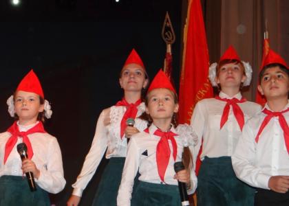 Следующая страница истории Саратовского комсомола вернула ветеранов комсомола в страну пионерии. 19 мая 1922 года в нашем городе был создан первый саратовский пионеротряд. 63 года назад в пионеры вступил и Борис Константинович Амхир. Бессменный директор детского оздоровительного лагеря «Березка», старший пионервожатый Всесоюзного лагеря «Артек», вышел на сцену вместе с лучшим ученическим отрядом г. Энгельса. Такого количества пионерских песен, детей в пионерской форме с красными галстуками и в красных пилотках саратовцы не видели и не слышали давно. А исполнение песен «Взвейтесь кострами синие ночи» и «Орлята учатся летать» было таким смелым и задорным, что каждый из сидевших в зале вновь почувствовал себя юным и мысленно перенесся в свое пионерское детство. Завершилась пионерская страничка красивым выступлением юных барабанщиц из г. Балаково.