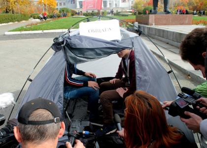 Студенты Уральского федерального университета, которые не могут добиться от администрации вуза законной возможности заселиться в общежитие, при поддержке Свердловского областного отделения КПРФ 10 сентября провели акцию протеста у главного корпуса университета. Протестующие поставили палатку с надписью "Общежитие" прямо на площади перед вузом, в которую тут же и заселились.