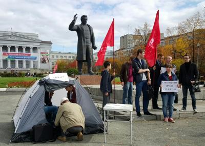 Студенты Уральского федерального университета, которые не могут добиться от администрации вуза законной возможности заселиться в общежитие, при поддержке Свердловского областного отделения КПРФ 10 сентября провели акцию протеста у главного корпуса университета. Протестующие поставили палатку с надписью "Общежитие" прямо на площади перед вузом, в которую тут же и заселились.