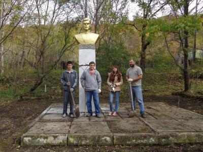 В минувшие выходные, с 10 по 11 октября 2015 года, комсомольцы Владивостока посетили поселок Экипажный, что на ближайшем к городу острове Русский, где находится заброшенный памятник Сергею Лазо — военачальнику и государственному деятелю, принимавшему активное участие в установлении советской власти в Сибири и на Дальнем Востоке.