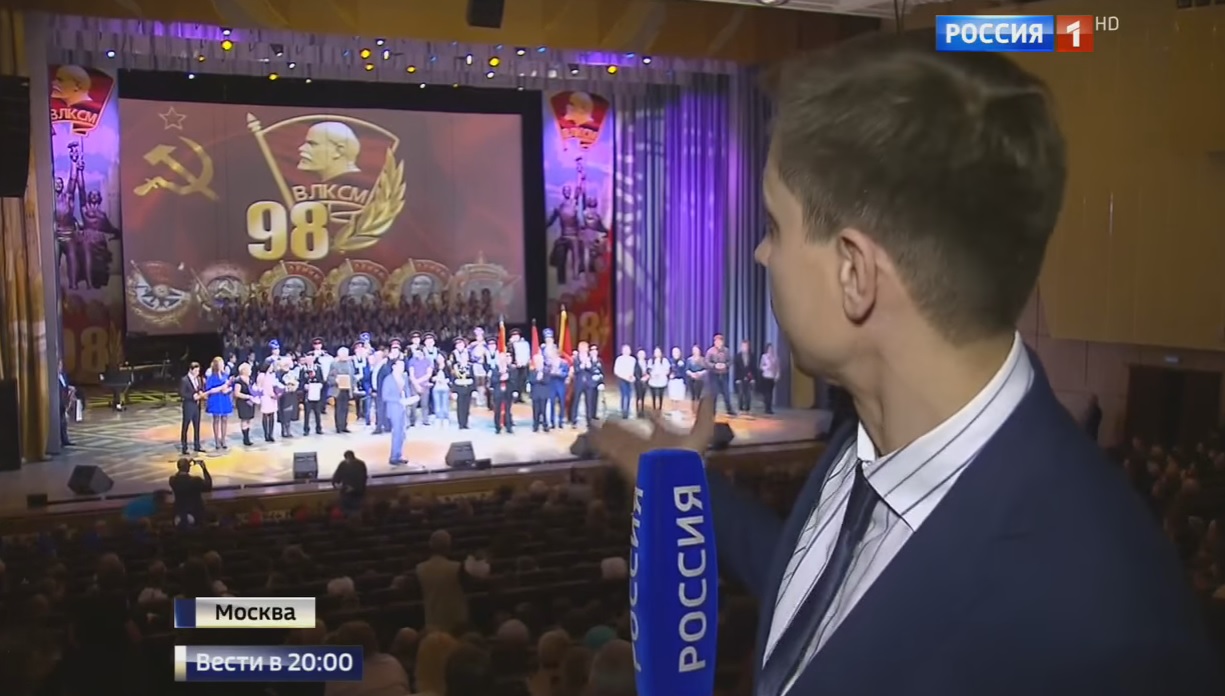 Телеканал «Россия 1» в программе "Вести" показал репортаж о праздничном концерте в честь 98-летия Ленинского комсомола.