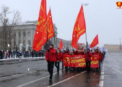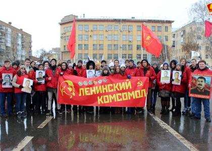 Своей коробкой достойно прошли и самарские комсомольцы с алыми знамёнами и портретами героев-комсомольцев. Во главе красной колонны они пронесли портрет Генералиссимуса Победы Иосифа Виссарионовича Сталина.