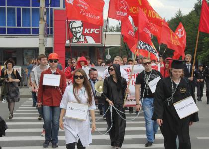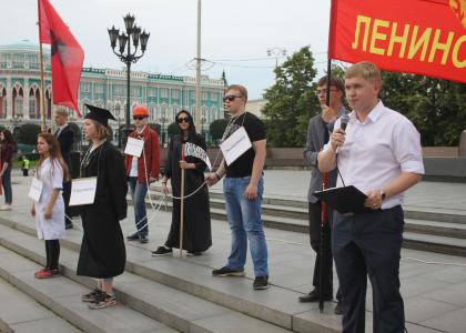этом году комсомольцы выразили свой протест в форме театрализованного представления.