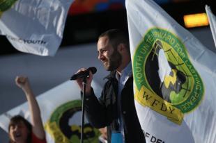 Утром площадки фестиваля наполнились громом революционных кричалок. Тысячи молодых людей из левых организаций стран всего мира прошли в традиционном антиимпериалистическом марше через всю территорию фестиваля. Во главе колонны гордо шествовала делегация Ленинского комсомола. Комсомольцы скандировали лозунги "ЛЕНИН! ПАРТИЯ! КОМСОМОЛ!", "ВИВА КУБА! ВИВА ФИДЕЛЬ!", "В КОММУНИЗМЕ СМЫСЛ ЕСТЬ!", "EL PUEBLO UNIDO JAMAS SERA VENCIDO!", "ЛЕНИН, СТАЛИН, ЧЕ ГЕВАРА!", "КРАСНЫЕ В АДЛЕРЕ".