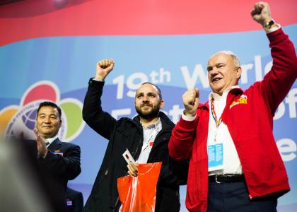 В ходе встречи Геннадий Зюганов вручил памятные медали ЦК ЛКСМ РФ в честь 70-летия фестивального движения ряду её участников. Среди награждённых - президент Всемирной федерации демократической молодёжи Николас Пападимитриу и дочь Че Гевары - Алейда Гевара Марч.