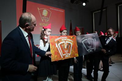 Отряд пионеров под руководством секретаря ЦК КПРФ Марии Дробот прибыл на комсомольский форум. Юные ленинцы прочли стихотворения и своими руками сделали подарок Съезду: картину, с эмблемой 100-летия Ленинского комсомола. От пионеров и комсомольцев картина была вручена партийному лидеру Геннадию Зюганову.